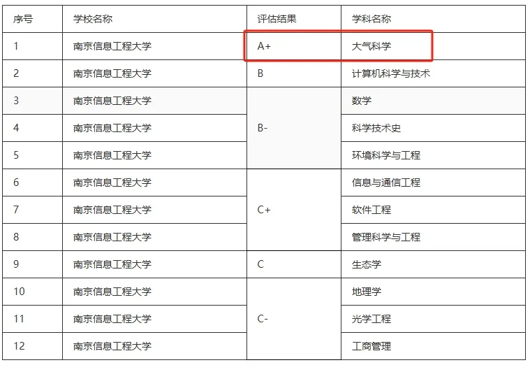 在第五轮学科评估中,南京信息工程大学的大气科学获得了A+评级,与北大并列全国第一。