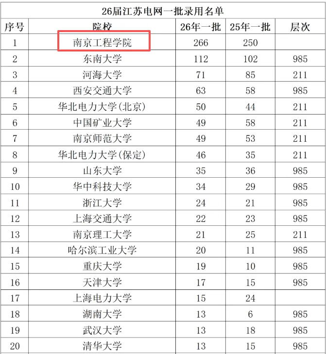 在江苏电网录用名单中,南工程力压一众985/211,被录用人数断层第一。