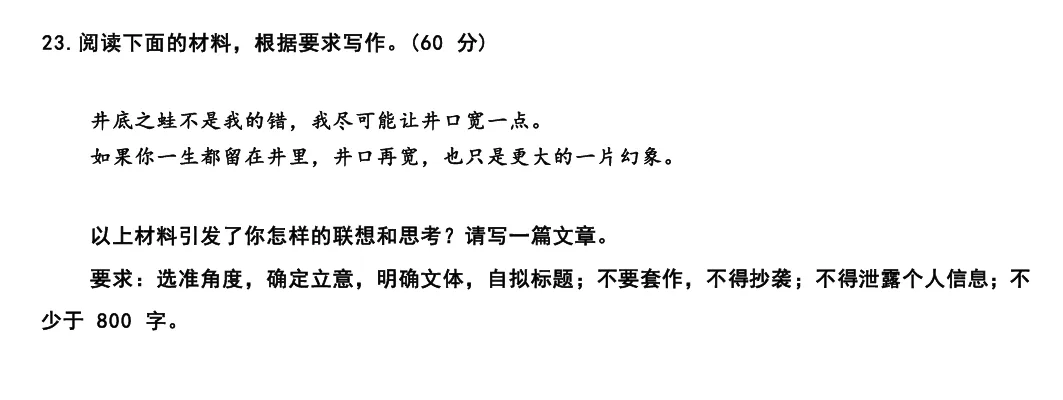这道题给了我们两句话。第一句:“井底之蛙不是我的错,我尽可能让井口宽一点。”第二句:“如果你一生都留在井里,井口再宽,也只是更大的一片幻象。”