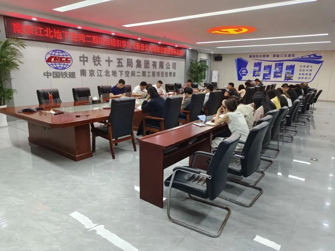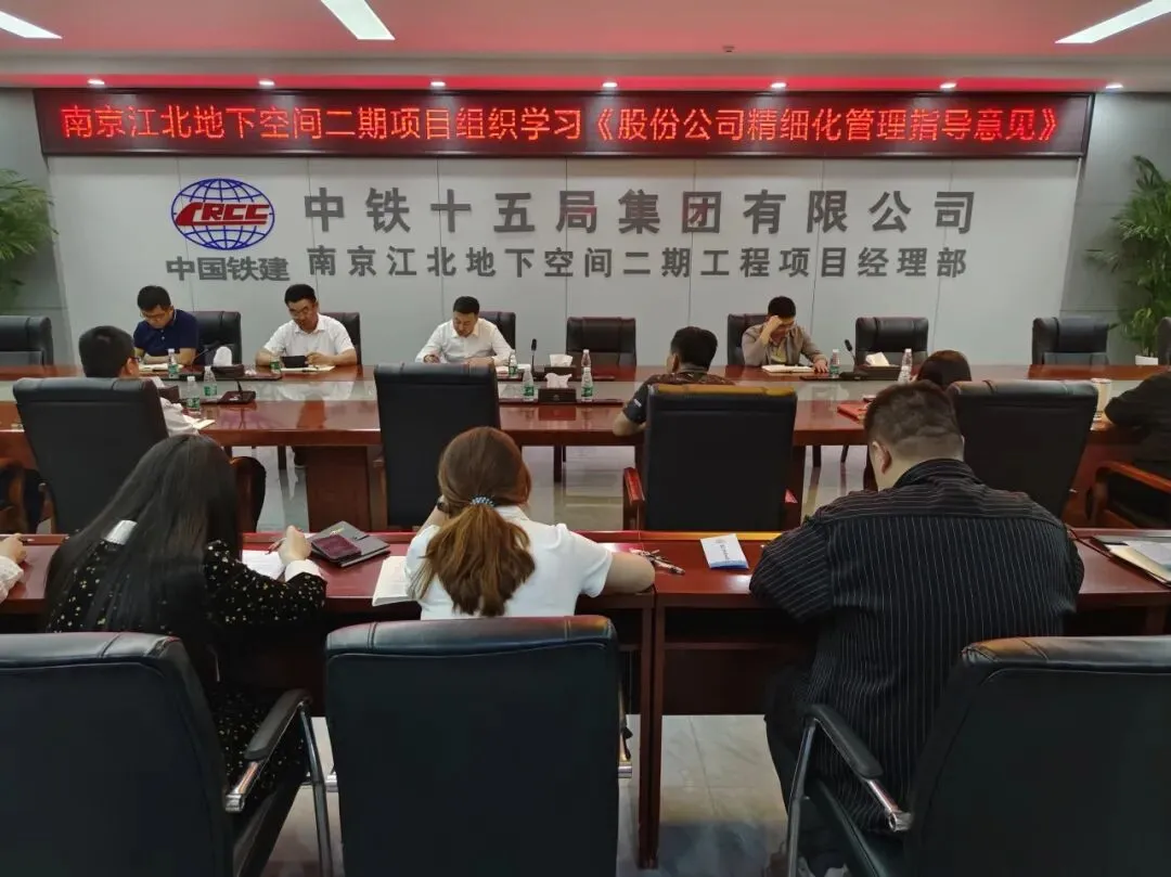 为深入贯彻股份公司项目精细化管理指导意见,认真落实集团公司及公司项目精细化管理推进工作要求,4月29日,南京江北地下空间二期项目第三次组织开展《股份公司精细化管理指导意见》学习宣贯会,会议由项目经理林弦主持,全体职工参加。