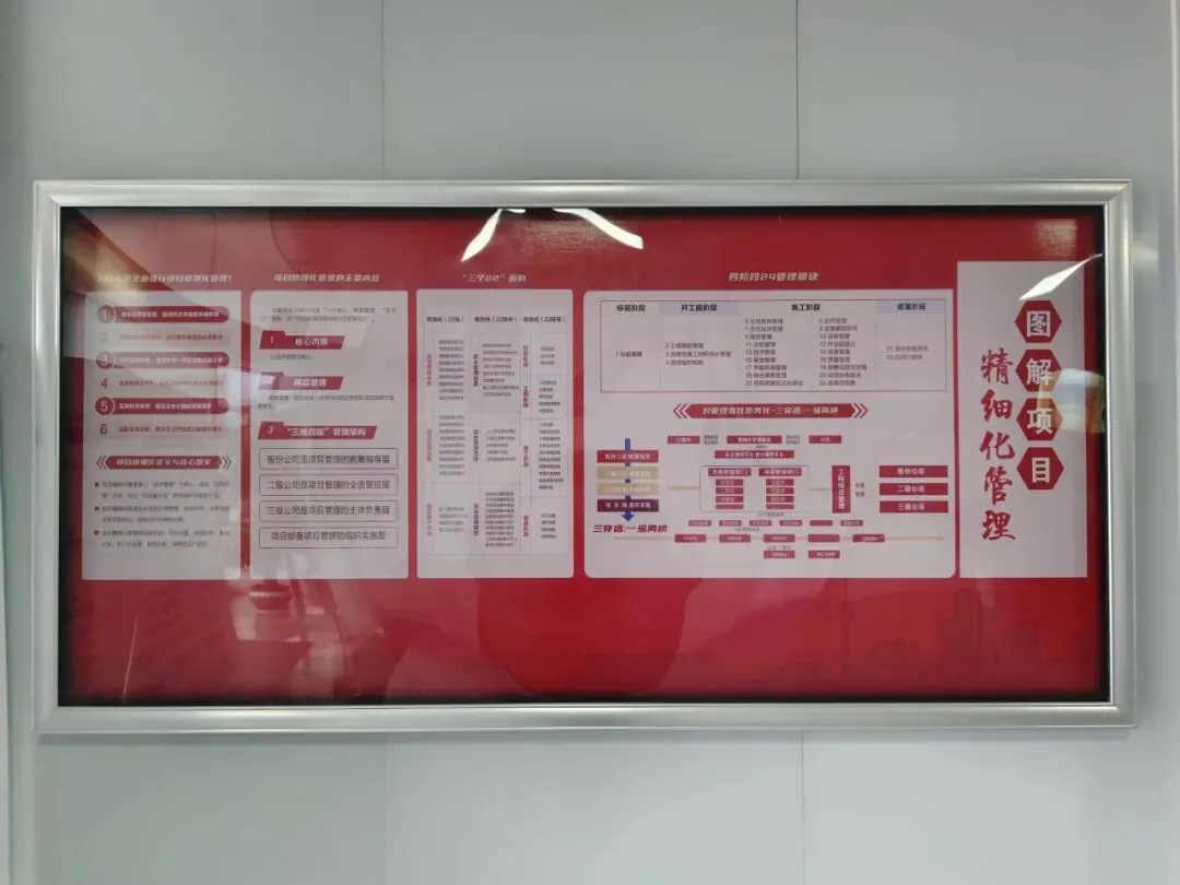 除组织学习外,项目部还通过摆放“易拉宝”、布置宣传栏以及制作一图看懂等方式,使项目职工快速熟知精细化管理的具体内容,并融会贯通。接下来,项目将继续以部门为单位加强学习,把贯彻落实精细化管理作为首要任务,组织精细化管理考核测评,并明确各部门责任分工,提升职责意识,增强项目核心竞争力,全面提升项目精细化管理水平,推动项目高质量发展。