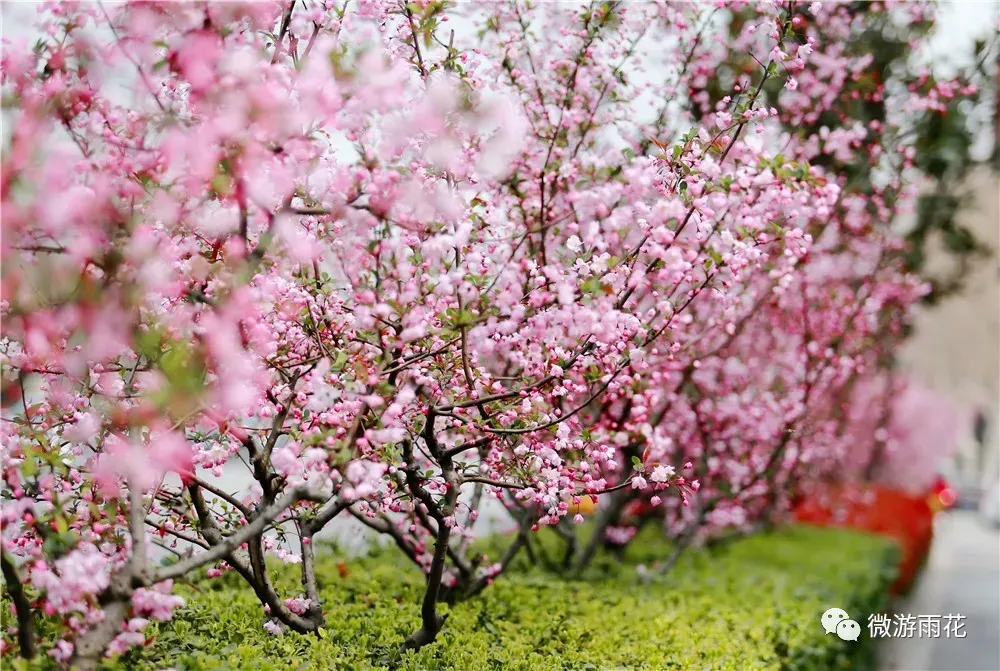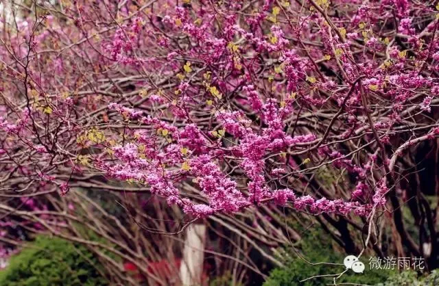 每到春天,这里就变身成一条紫红色的丝带装点着大雨花,浓烈而迷醉,鲜艳而纯粹。