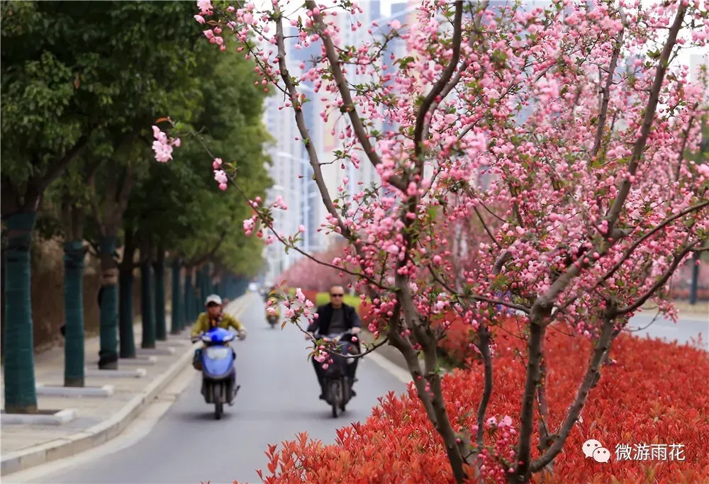 三季有花,四季常绿。2014年4月建成完工的宁丹路垂丝海棠主题大道,现如今已花木成林。