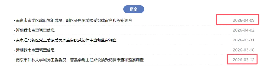更为值得关注的是,两人同期被查的时序交集,彰显了南京园区领域反腐的高压态势,也暗示着两人可能身处同一反腐生态链。熊俊与唐承武均由南京市纪委监委查办,被查时间相隔不到一个月,处于南京2026年“园区/新城建设领域系列反腐”的同一波次中。结合同期南京还有陈兵、任玮、张思俊等5名公职人员同日被查,覆盖园区招商、土地、城建等多个领域的态势来看,熊俊与唐承武的被查,绝非孤立案件,极可能来自同一线索的扩线查处,或是同一腐败生态下的集中整治。尽管截至目前,官方尚未通报两人存在直接利益输送、团伙作案等关联,也无证据显示他们共同插手同一项目、同一企业,但这种“同域、同期、同领域、同被查”的高度重合,已然构成了两人最深刻的交集——他们都是南京园区治理中权力监督缺位的牺牲品,都是同一腐败生态下的堕落者。