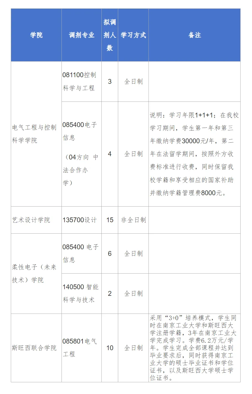南京工业大学2026年硕士研究生第二批调剂需求公告