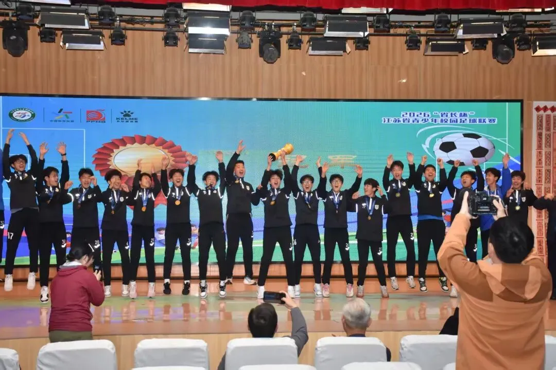 4月9日,2026“省长杯”江苏省青少年校园足球联赛初中男子组决赛圆满落幕。经过多轮激烈角逐,南京师范大学附属中学树人学校足球队凭借顽强斗志与精湛技艺,成功斩获冠军,将今年全新发布的“共创”冠军奖杯留在南京,为金陵校园足球再添一枚沉甸甸的省赛金牌!