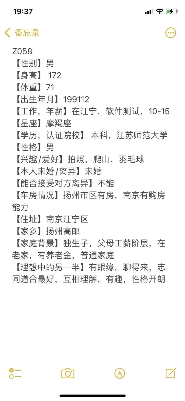 这是一个浮躁的时代,也是一个认识人成本极低的时代,无效的人和事占据太多的时间,骗子、约炮、理财销售等等让我们产生焦虑、内耗,为了帮助大家节约时间,相亲宝公众号发帖人不公布联系方式,我们红娘负责过滤一些不靠谱的人,专门进行验证,核实。提示大家:相亲急切的心情可以理解,但相亲过程中不要有任何金钱往来,切记切记。精准一对一推荐介绍,唯一线下门店地址:秦淮区大行宫长安国际2307。