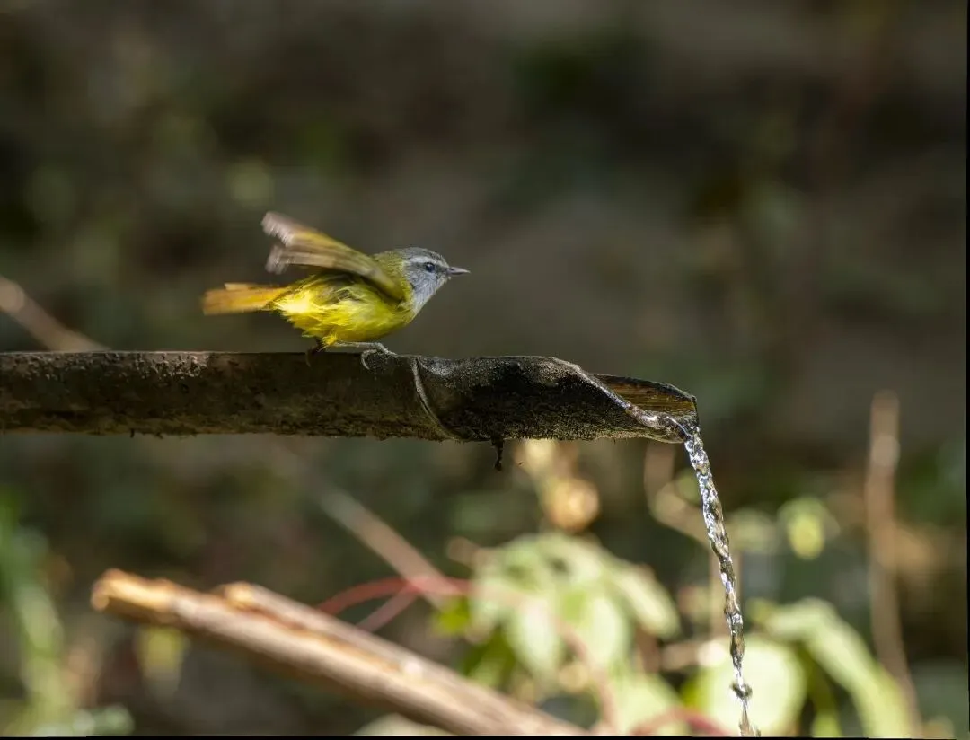 先说加新的金头穗鹛,本来这个鸟塘我就只有2个目标鸟,结果9点不到棕颏噪鹛已经搞定了,然后一直等到11:30左右才等来了我的金头穗鹛,而且表演时间不超过30秒,真是小气啊还好我盯得比较仔细,要不然这几张洗澡的都拍不到,哈哈金头穗鹛(学名:Stachyris chrysaea)小型鸟类,体长10~11厘米,是一种黄色小鸟。头顶金黄色有黑色纵纹,眼先黑色,在头、颊和耳羽金黄色的衬托下亦甚醒目。上体橄榄黄色,下体亮黄色,腹和两胁沾绿。