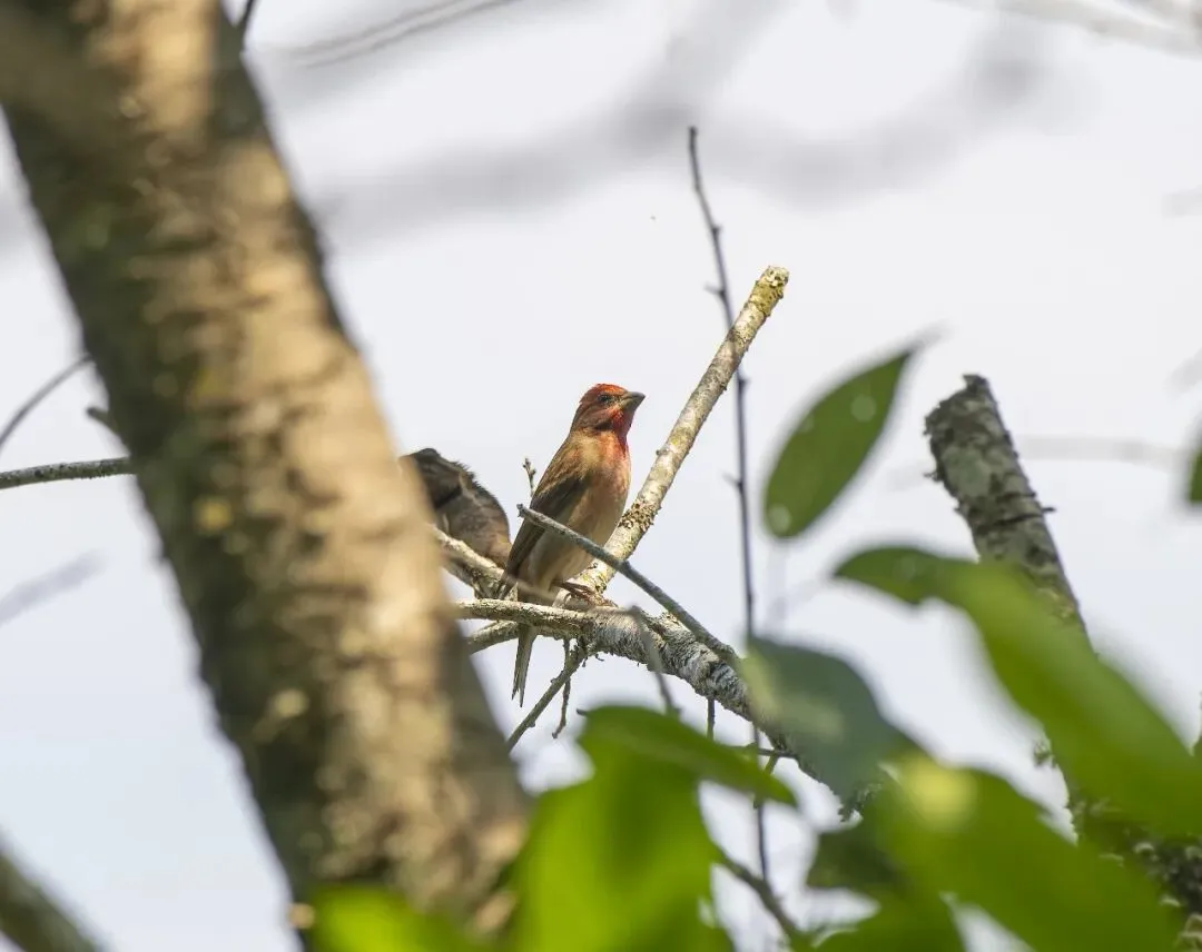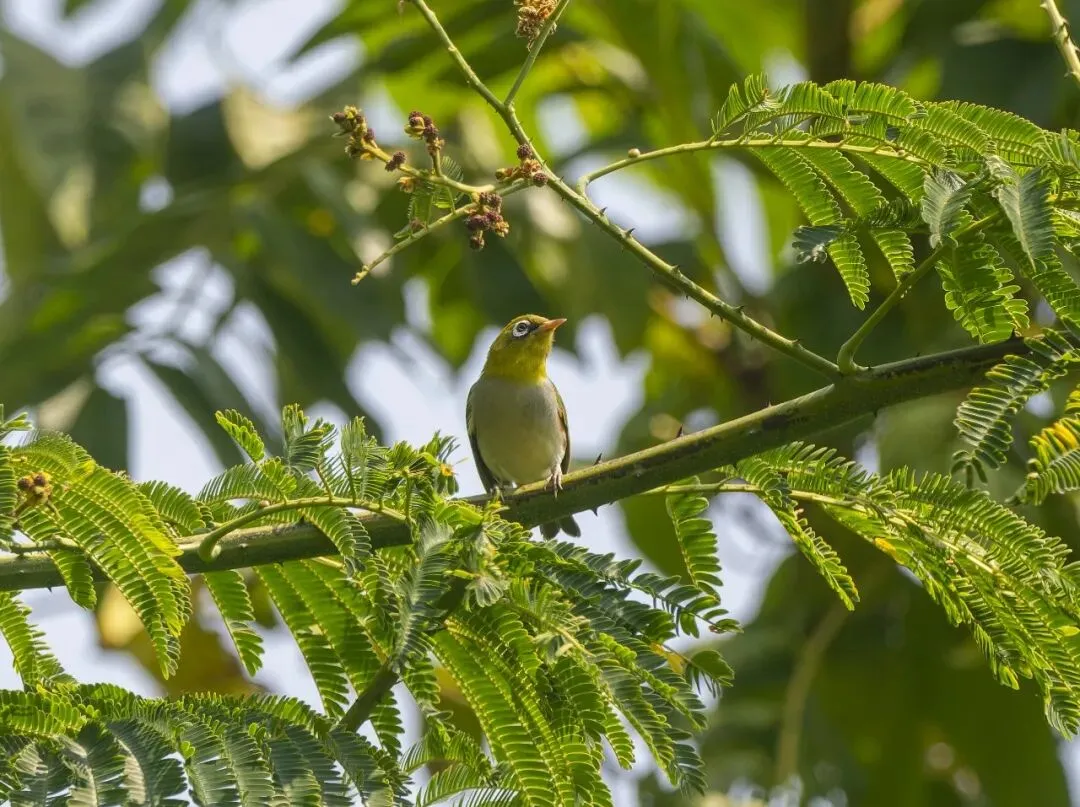 结小群活动于原始林、次生林及松林的低矮树丛的叶间,常与其他种类混群。叫声为非常嘹亮的4~8声低哨音“toot~”,第一声或前两声加重而有停顿;也有群鸟的吱吱叫声。