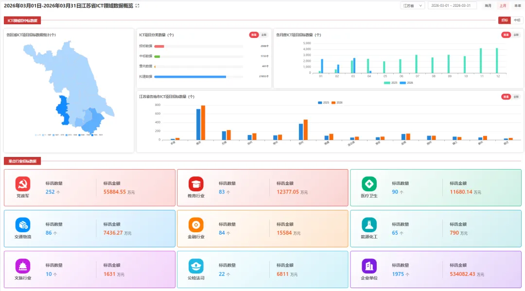 ICT标局平台为用户提供招标、中标、标前预告、拟建项目以及商机预测信息的筛选、查看及导出。重大项目提前预见,市场趋势有据可循!