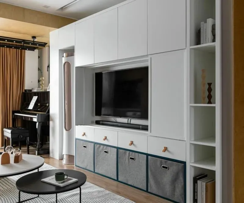 客厅电视背景墙没做复杂造型,就是一整面白墙,配简单原木色电视柜,屋主说,这样看起来省钱还耐看,沙发选了小巧款,不用大号那种,一家三口刚好够坐,茶几特意买的小圆桌,怕磕碰到家里小孩,阳台位置留个休闲椅,周末坐这里晒太阳,发呆或者看书都很舒服,我觉得这样想法很实在,不花哨,真正考虑家人日常。