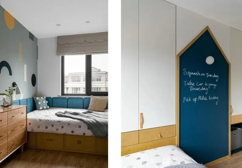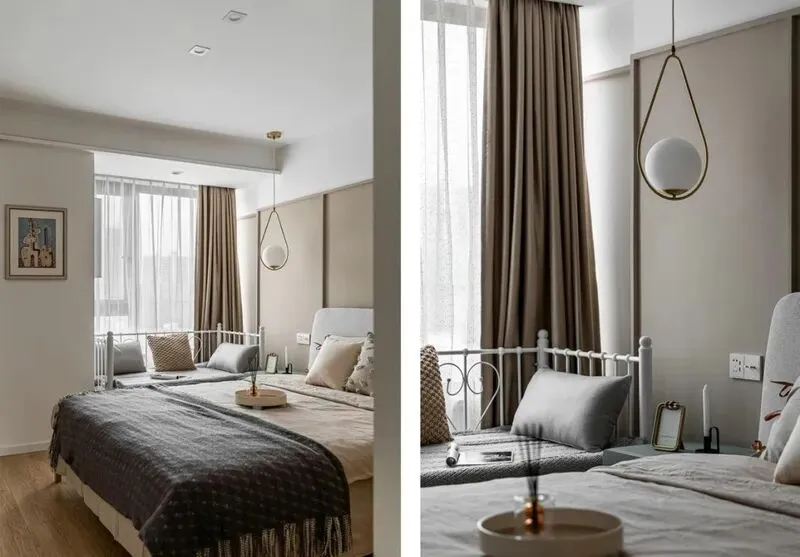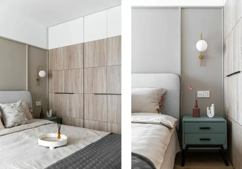 卧室风格延续了客厅感觉,主卧柜子通通顶天立地,空间利用到极致,屋主说,以前租房最烦老积灰,这回终于一劳永逸,床头没有放杂物,采光很妙,白天不用拉灯,休息区和衣帽间隔开,有单独收纳小空间,收拾起来不累人。卧室墙面用浅灰,不压抑,晚上灯光柔和很舒服,床头留了壁灯,随手就可以开关,细节考虑挺周到。