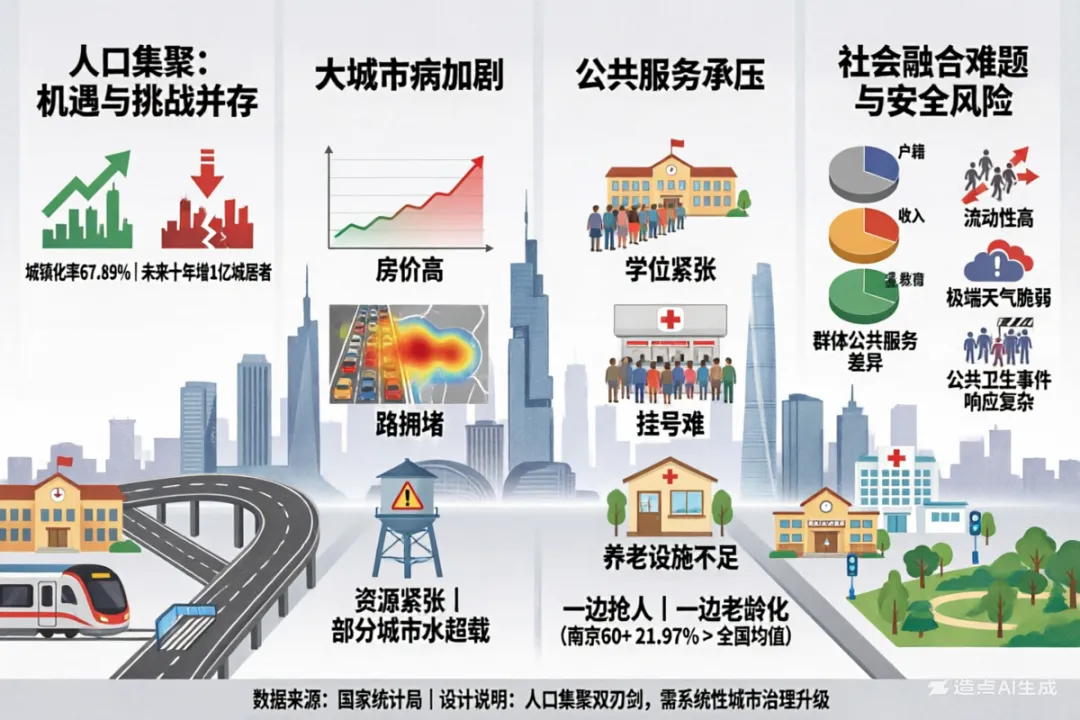 社会融合难题:户籍、收入等因素可能导致不同群体享受公共服务存在差距,对城市包容性提出更高要求。