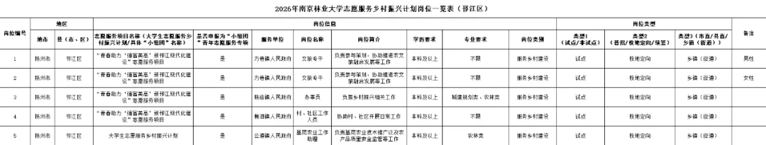 2.志愿服务岗位共分为3类,包括普通批次岗位、校地定向招募岗位以及续签岗位。其中,普通批次岗位可供符合条件的大学生报名,校地定向招募岗位无需在系统报名,符合条件的同学请按岗位具体要求,向所在高校团委报名,填报材料。