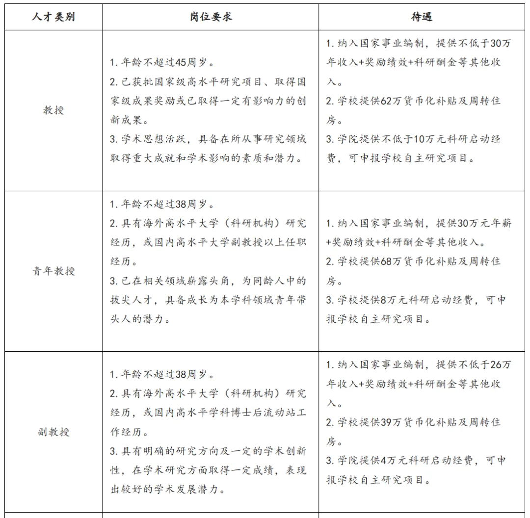 1.岗位类别:教授(含青年教授)、副教授、助理教授、博士后。