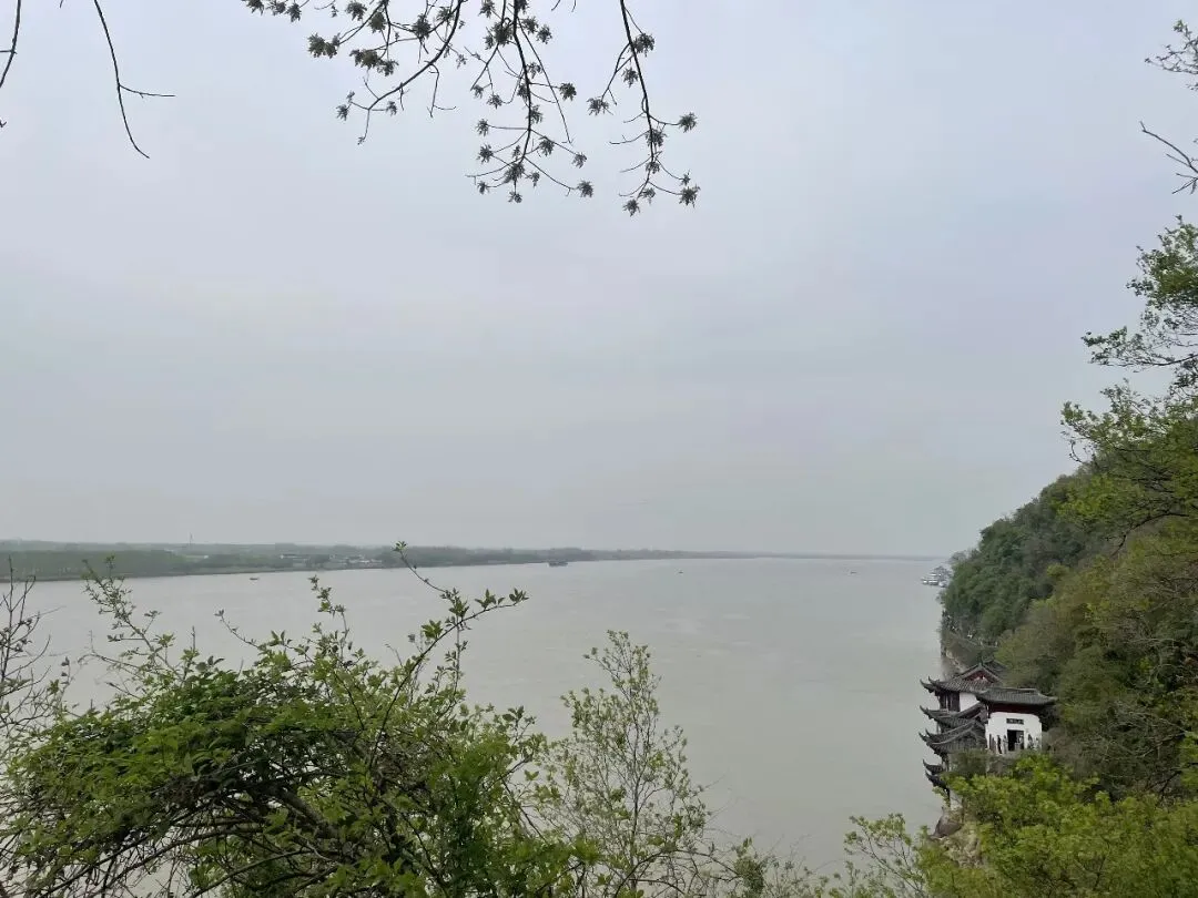凭栏远眺长江,虽不见“滚滚长江东逝水”的奔腾气势,但江面依旧壮阔,尽显大江的雄浑气魄。