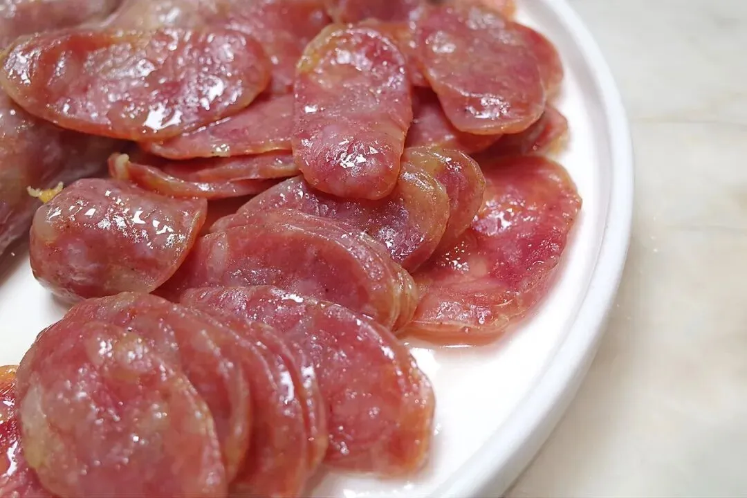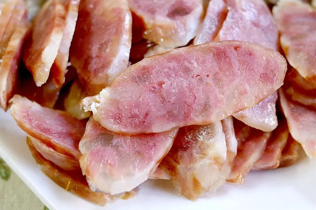 香肠晒好之后吃法也很简单,毕竟香肠本身的味道已经足够好,简单的蒸熟熟了就行。南京人过年的餐桌上都会有一碟切好的香肠作为冷盘,烧的全家福大杂烩里也会放点香肠同煮,这两种就是最经典的吃法。