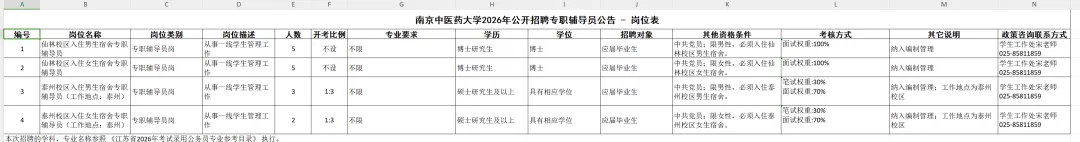 南京中医药大学人力资源处、学生工作处负责回答此次招聘政策、岗位咨询。
