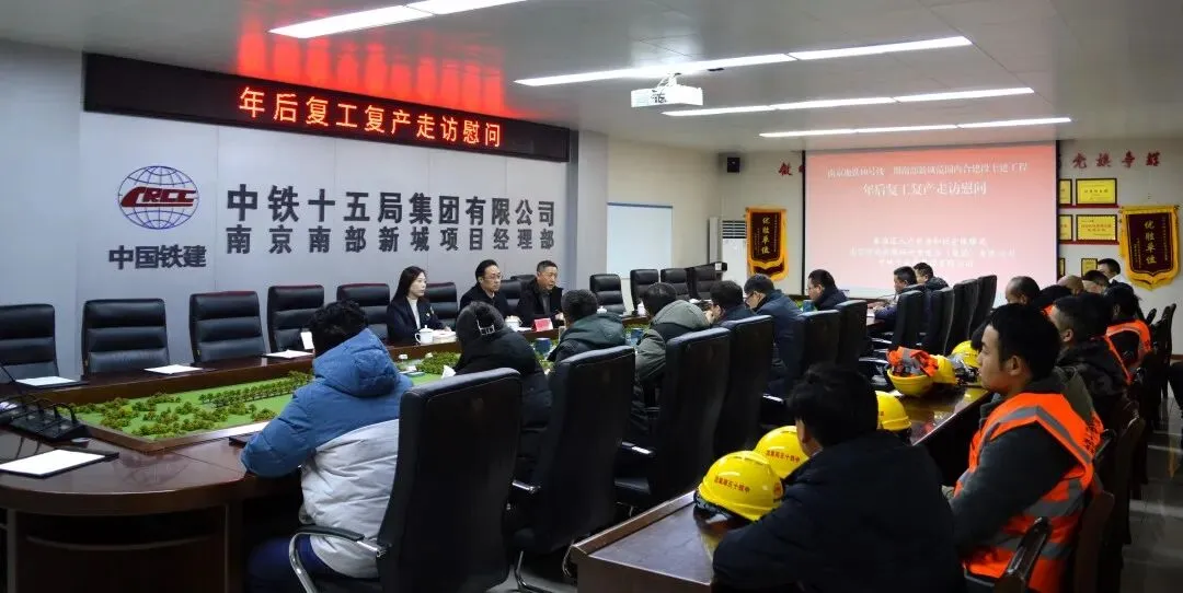 2月22日,南京市秦淮区人社局、秦淮区劳动保障监察大队到中铁十五局集团城建公司南京南部新城项目开展复工复产走访慰问。秦淮区政协副主席、人社局局长成剑,人社局三级调研员张辉出席此次活动。
