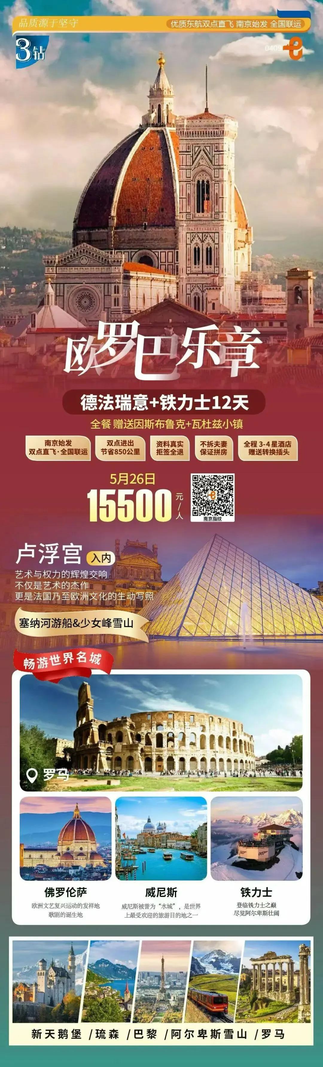 南京始发+南京指纹+全国联运 🌟南京德法瑞意+铁力士12天🌟 仅此一班,全餐,赠送因斯布鲁克+瓦杜兹