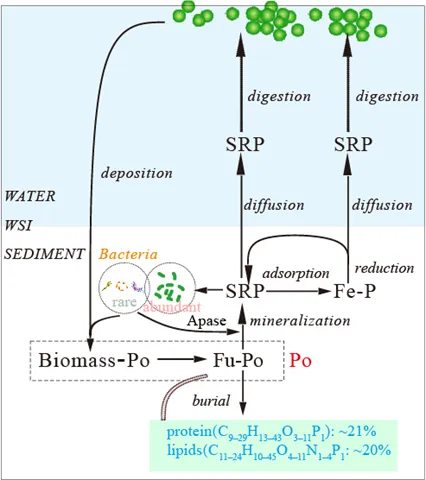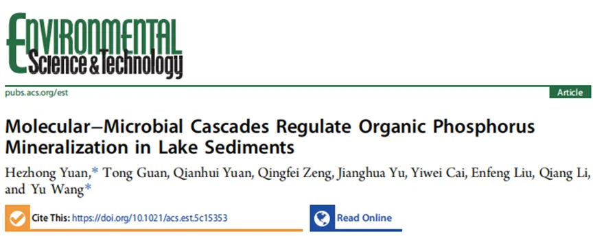 https://doi.org/10.1021/acs.est.5c15353近日,南京信息工程大学袁和忠团队与中国科学院南京土壤研究所汪玉课题组合作,在《Environmental Science & Technology》上发表题为“Molecular–microbial cascades regulate organic phosphorus mineralization in lake sediments”的研究论文(DOI: doi.org/10.1021/acs.est.5c15353)。该研究综合运用原位沉积物采样、傅里叶变换离子回旋共振质谱(FT-ICR MS)分子表征、酶学指标测定、宏基因组测序以及全球荟萃分析,系统解析了湖泊沉积物中有机磷(Po)在矿化过程中的分子组成与结构特征,明确了驱动溶解活性磷(SRP)再补充的关键磷组分,并揭示了不同磷负荷条件下由功能性细菌代谢介导的磷矿化调控通路。通过整合分子与微生物学视角,研究深化了对湖泊内部磷循环机制的理解,为阐明淡水湖泊富营养化过程及环境可持续性相关的微生物调控机制提供了新见解。本研究以太湖中蓝藻优势区(WTH)与大型水生植物优势区(ETH)这两个对比鲜明的生态位为对象,整合激发-发射荧光光谱技术、FT-ICR-MS及宏基因组学方法,旨在系统阐明沉积物中有机磷矿化的相关机制。研究结果表明:富里酸相关磷(Fu-Po)主导沉积物磷库,而通过NaHCO3提取的磷(NaHCO3-Po)及微生物生物量磷(biomass-Po)则表现出更高的分解潜力。荧光指数显示,磷的稳定性随沉积深度增加而增强;在缺氧条件下,类腐殖质物质更易分解,同时伴随类富里酸组分的积累。FT-ICR-MS分析进一步揭示,蛋白质与木质素是腐殖质相关磷及Fu-Po的关键组成成分,支持其生物可利用性;而NaHCO3-Po中富含类脂CHOSP结构化合物,提示其具有更高的分解活性。宏基因组学分析鉴定出phoD基因为最丰富的磷酸酶编码基因,少数高度关联的phoD携带类群与丰富功能群共同构成了潜在的调控关键因子。在全球湖泊沉积物尺度上,碱性磷酸酶(APase)活性、磷含量与phoD丰度呈正相关。结构方程模型分析表明,Fu-Po通过phoD介导的磷酸酶活性,成为溶解活性磷(SRP)补充过程中不成比例的间接驱动因素。上述发现揭示了分子组成与phoD介导的酶活性在磷矿化过程中的级联调控机制,证实磷的生物可利用性(而非单纯的无机磷库)是降低沉积物内部负荷的关键驱动因素。靶向调控该通路有望调节全球沉积物中的磷矿化过程,为加速缓解营养压力下的湖泊富营养化提供重要科学依据。与水生植物优势区相比,藻型湖区的营养盐含量总体较高。上覆水体与沉积物中的各项参数之间存在显著正相关性,表明沉积物中磷的分解过程促进了水体中营养盐的富集。藻型湖区(WTH处理组)较高的叶绿素a浓度可归因于其升高的磷含量。两个区域在优势初级生产者类型上的差异,直接影响了沉积物中颗粒碎屑的组成与埋藏特征。本研究中,两个区域的C/N质量比均低于8.5,表明有机质以藻类来源为主;其中,水生植物优势区的C/N比值略高,反映出该区域大型植物的输入量相对更大,这一结论得到了稳定碳同位素(¹³C)特征的支持。具体而言,本研究测得的δ¹³C值整体指示藻类的优势地位,而水生植物优势区较高的δ¹³C值则再次印证了大型植物的贡献。随着Po含量的增加,C/N质量比与δ¹³C值均呈下降趋势,表明藻类碎屑对沉积物有机质的贡献逐渐增强。蓝藻优势区较低的C/N质量比及较轻的δ¹³C值,反映了藻类残体的强烈积累,从而导致该区域在沉积过程中具有更高的磷矿化潜力。此外,磷与其他磷组分之间存在显著正相关性,进一步证实了磷从磷源中获得了显著补充。