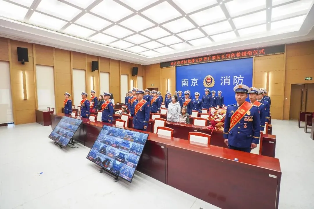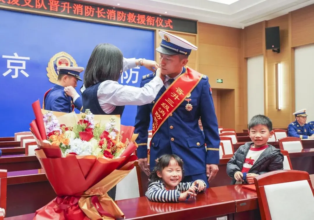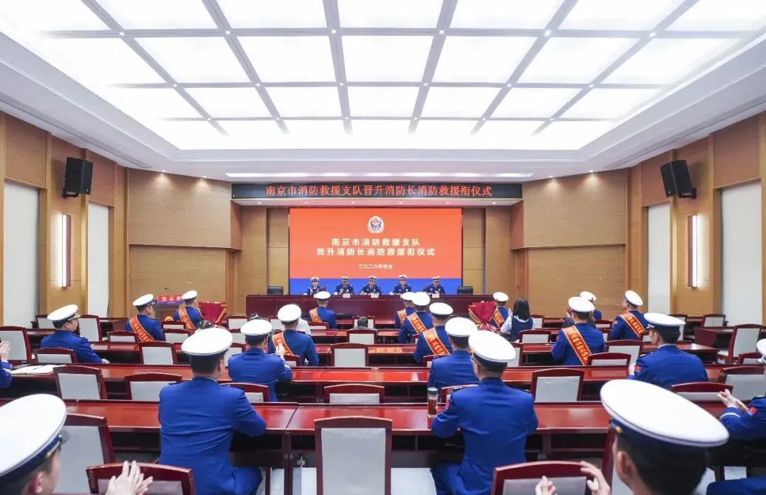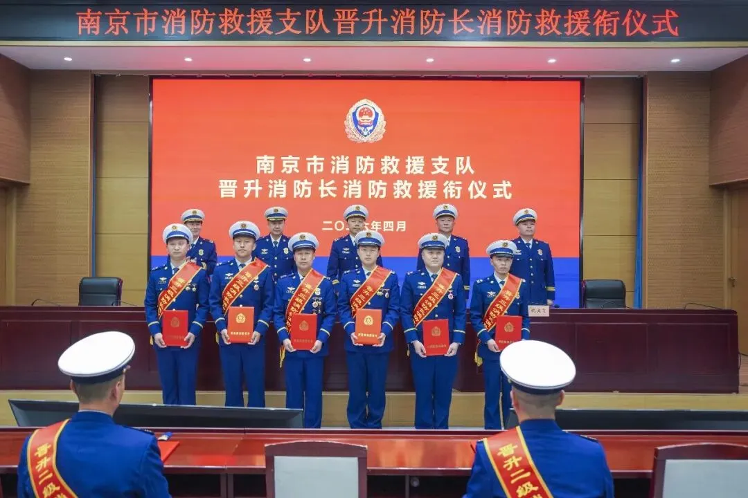 为鼓舞士气、激励斗志,增强消防员使命感和荣誉感,4月8日下午,南京市消防救援局举行2026年度晋升消防长消防救援衔仪式,局党委书记、政治委员孙山及在家党委成员出席仪式,仪式邀请高级消防员家属、子女来到现场,共同见证这一光荣时刻。