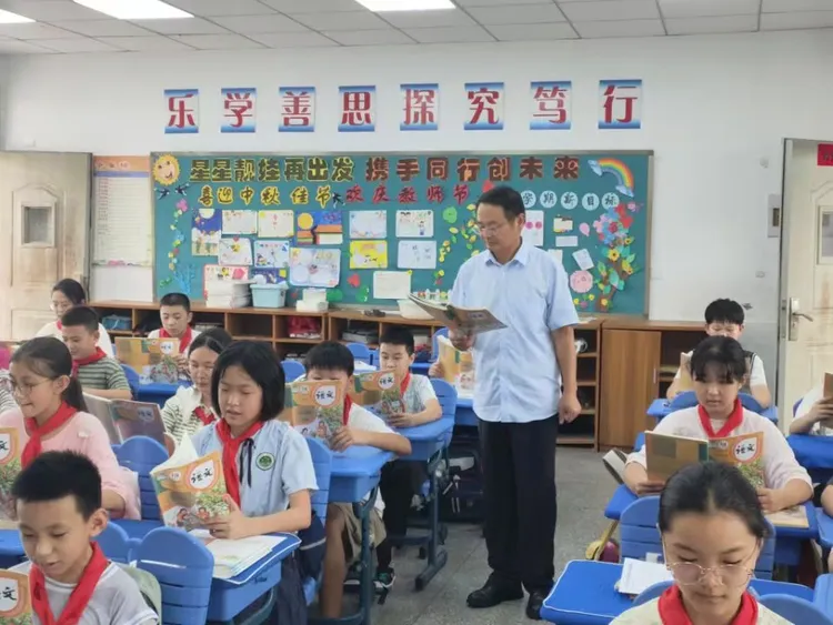 在星甸小学,王锦国老师的名字早已与“担当”二字紧紧相连。2015年,学校面临老教师病退、新教师匮乏的困境,18个班的教学任务压得人喘不过气。开学在即,却仍有一名语文教师的岗位空缺。就在校长四处奔波、屡遭婉拒的关键时刻,王老师站了出来:“明天教师就正式上班了,没时间了,让我来吧!”那一年,他身兼五年级两个班的语文课、一个班的班主任,还承担着教务处主任的重任。一句“让我来吧”,是他对教育最朴素也最坚定的承诺。