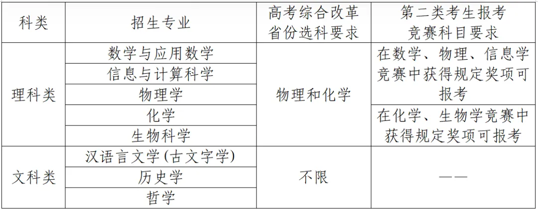 各省(区、市)符合2026年普通高等学校招生全国统一考试报名条件,具有强烈的专业兴趣,综合素质优秀,基础学科拔尖,并有志于将来从事相关领域科学技术工作的学生。申请报名考生分为以下两类: