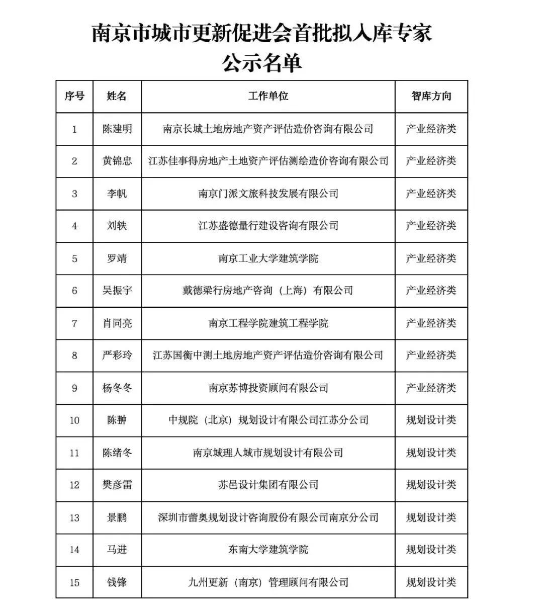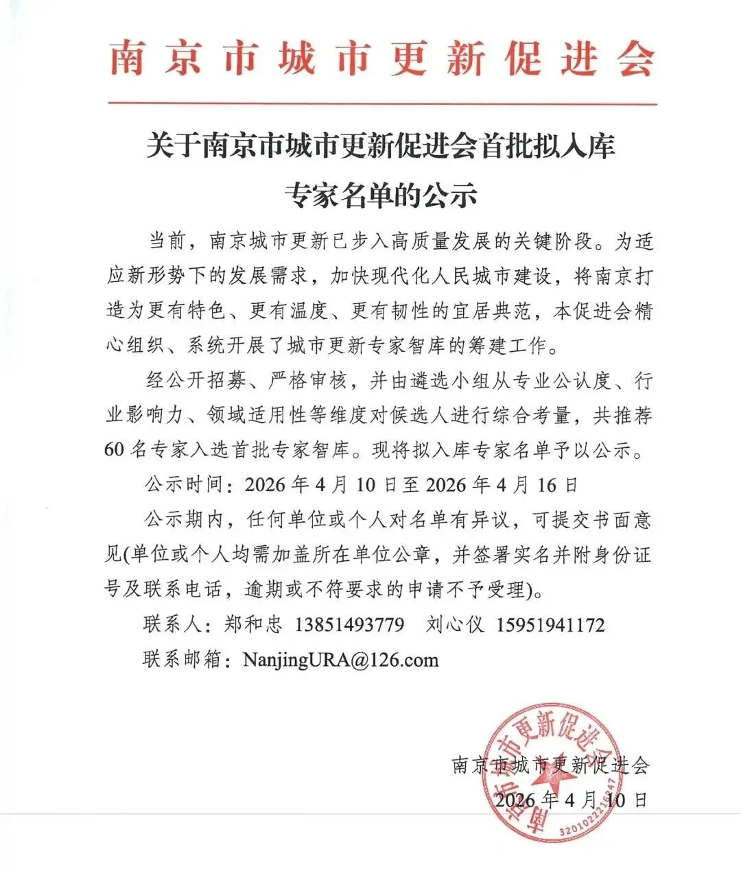 关于南京市城市更新促进会首批拟入库专家名单的公示