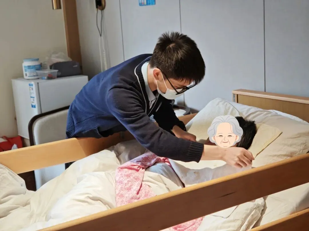 当长辈们情绪不稳、出现攻击性行为时,胡耀从不发脾气。“认知症导致的攻击性,可能是因为他们感觉疼痛或不舒服。”他理解这一点,总是先排除身体不适,再用温和的态度安抚。晚间的照护同样细致,定时巡房、协助翻身如厕,确保每一位长辈的安全与尊严。