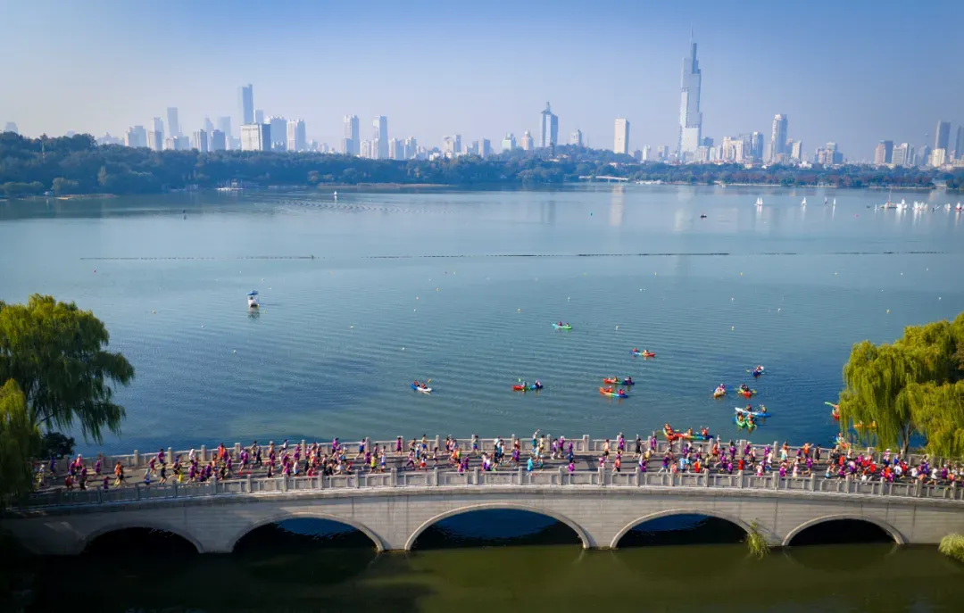同时,玄武湖赛道依山傍水、视野开阔,被誉为“南京马拉松的点睛之笔”,更被网友评为“国内十大跑步圣地”。环湖跑道上,奔跑的身影络绎不绝,脚步声与风声共鸣,汗水与风光相伴,蓬勃的生命力在这里尽情流淌。
