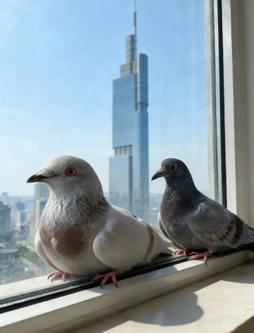 我守着自家小小的窗台,晨光斜斜洒落,暖了铝合金窗沿,也温柔笼住了栖在这里的欢欢与乐乐。两只乖巧的鸽子,轻轻抖落羽翼上的晨露,透亮的眼珠歪头望着眼前这座渐渐苏醒的城。