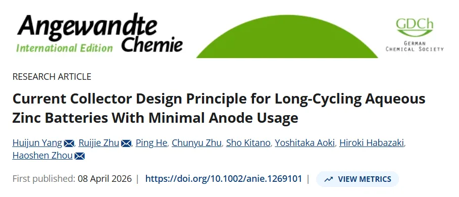 引用本文:H.Yang, R.Zhu, and P.He, et al., ““Current Collector Design Principle for Long-Cycling Aqueous Zinc Batteries With Minimal Anode Usage,” Angewandte Chemie International Edition (2026): e1269101.