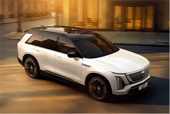 这是凯迪拉克纯电家族的旗舰SUV,车长5222mm、轴距3094mm,气场直逼凯雷德。搭载行业首创的舱内隐藏式激光雷达(禾赛科技联合开发),配合Momenta高阶智驾系统,全系标配。动力方面,双电机四驱版615马力,扭矩881.6牛·米,零百加速不到4秒(部分测试3.7秒)。搭载102kWh电池,续航约483公里。高配还带22英寸轮毂、Brembo六活塞卡钳、295mm宽胎。