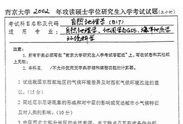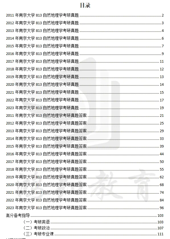 2011-2023年南京大学813自然地理学考研真题参考答案