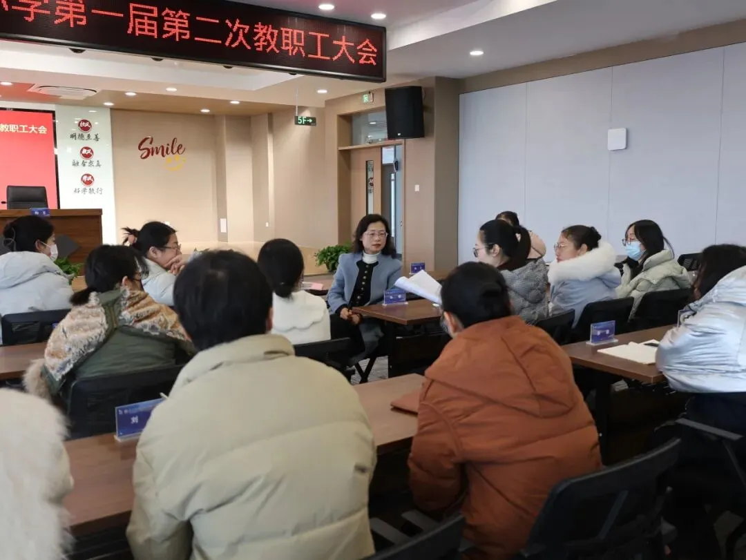 学校党支部书记、校长陆彩萍作题为《启智养正提升品质 融会贯通彰显特色》学校工作报告,她全面回顾学校自9月份启用以来在校园文化建设、教育教学、师资培养等方面取得的丰硕成果,让大家真切感受到学校发展的每一步都凝聚着全体教育人的心血。陆书记更精准剖析发展中的机遇与挑战,清晰擘画新一年学校发展的目标与举措,激励着每一位教职工携手奋进,共同谱写学校发展的新篇章。