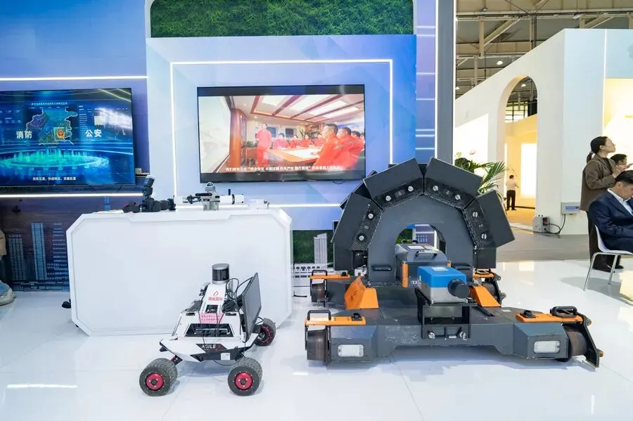 一批先进智能装备也同步集中登场:AI+无人机房屋安全智慧巡检系统、隧道监测机器人、管道检测修复机器人、微型智能巡检机器人精准排查各类安全隐患;智能哨兵、管网哨兵、智能地钉实现风险动态实时监测;长江五桥、扬子江大道综合管廊、“长狮18号”全电力挖泥船等模型,生动还原重大工程建设成果。各类高精尖设备悉数亮相,全方位展现出南京打造安全、韧性、智慧城市的坚实底气。