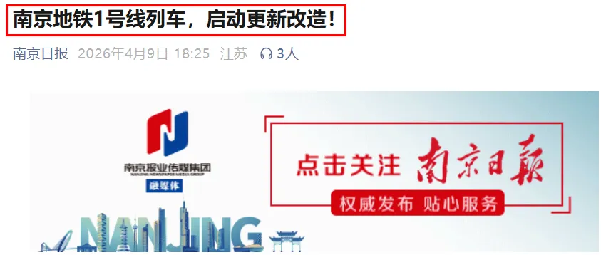今年9月底!根据南京地铁的消息,南京地铁1号线的更新改造,全程历时约5年完成全部20列列车的升级。