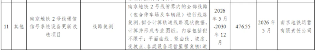 后续南京地铁2号线也要进行更新改造,此前曝光的合同工期为2026年5月-2030年12月。