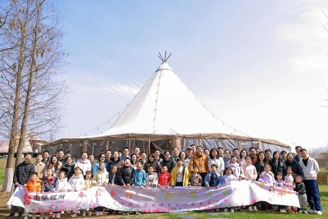 盐城、连云港分行将户外活动与业务拓展结合,组织女职工走进家庭农场、智慧化育苗工厂,实地感受乡村振兴发展成果;扬州、杭州、徐州、淮安分行组织春日踏青、趣味采摘活动,深入探索传统文化;南银理财前往浦口九龙湖开展环湖徒步与植树活动,凝聚团队合力,共绘美好愿景。