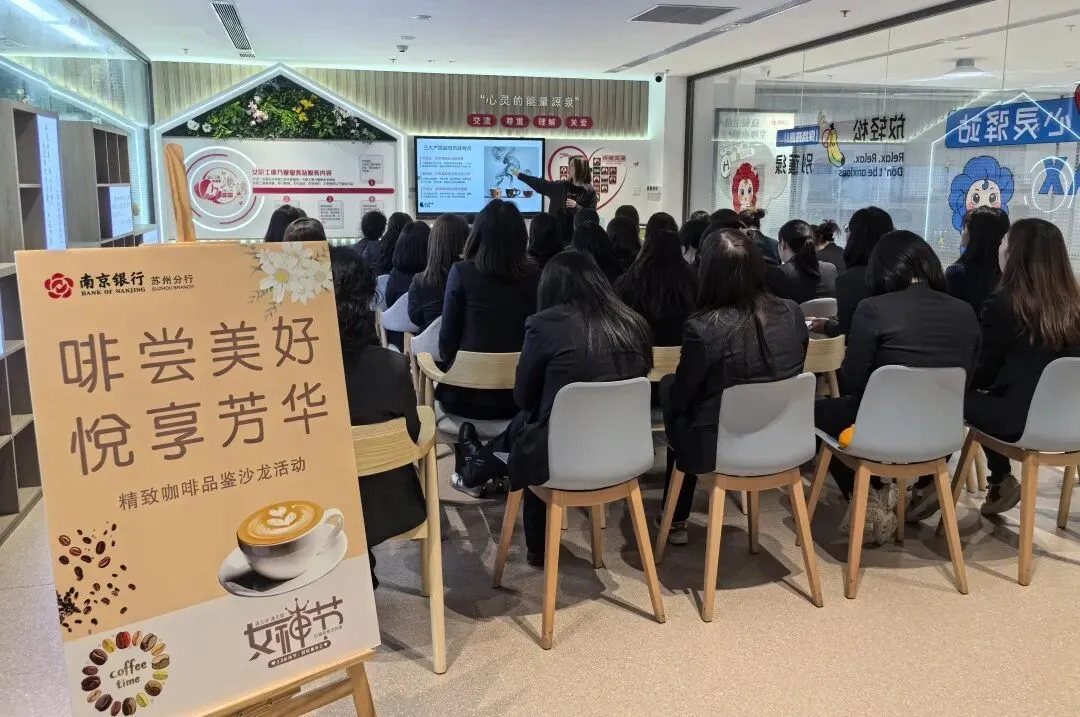 上海、苏州分行,总行机关分工会,南银法巴消金精心策划植物精油制作、钵音疗愈、咖啡品鉴等活动,帮助女职工舒缓身心、释放压力;南通、常州分行、总行资运中心及托管部分工会开展健康诊疗、心理健康讲座,全方位守护女职工身心健康;鑫元基金开设美妆课堂,助力打造精致职场形象。
