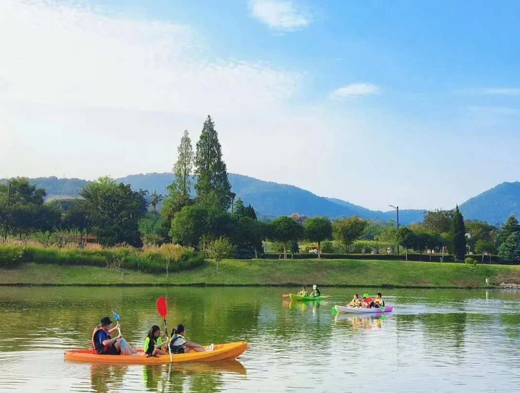 去到山水里的运动主场,皮划艇划开湖面,跑步、足球、篮球,想怎么比都行。