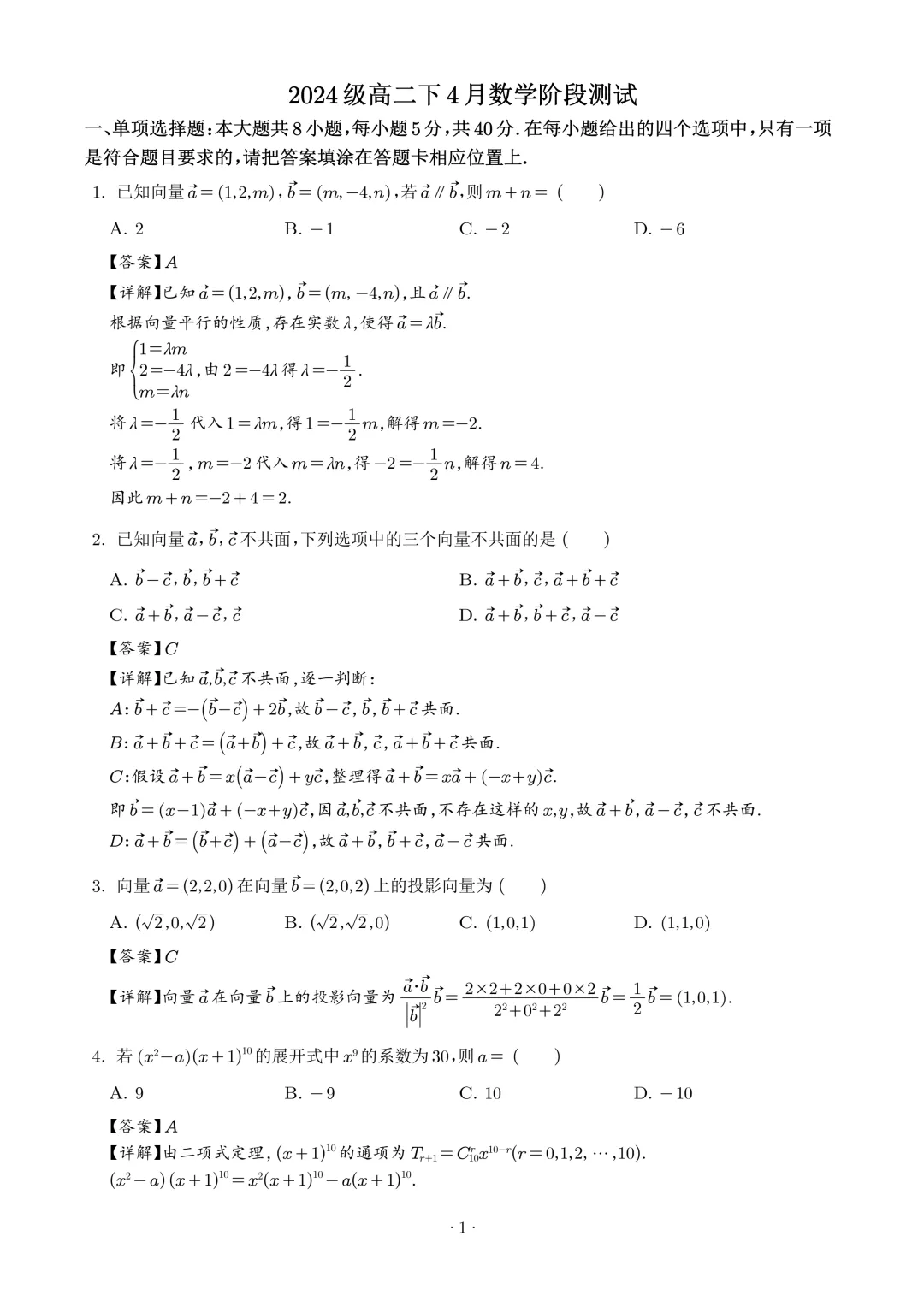 作者寄语:江苏南京师大附中2025-2026学年高二下学期4月阶段测数学试题+答案,7天有效领取,手慢无!!!