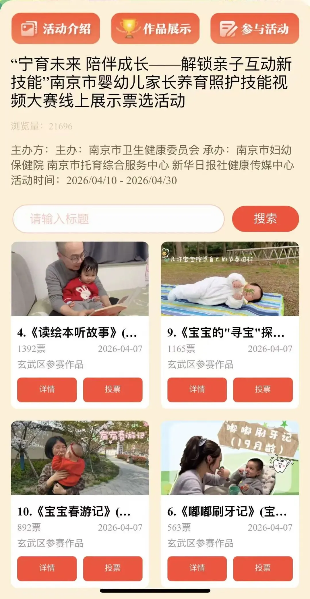 本次大赛以“宁育未来,陪伴成长”为主题,面向全市3岁以下婴幼儿家庭征集亲子互动短视频,聚焦亲子交流、游戏互动、生活照料、习惯培养等科学育儿场景,真实记录家长与宝宝的温馨瞬间,传递科学、规范、温暖的育儿理念。