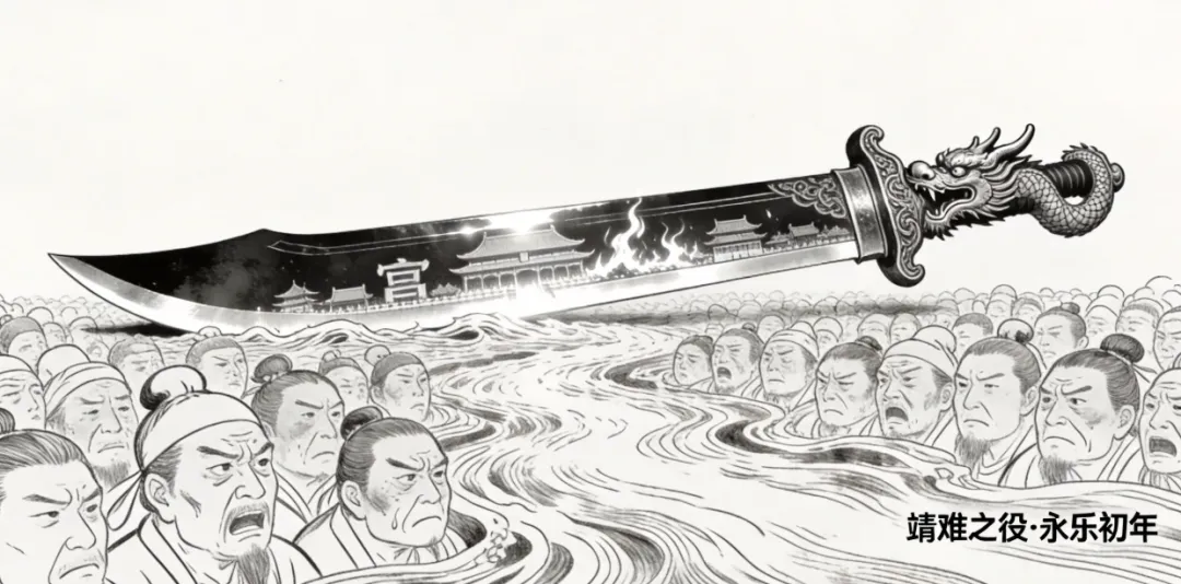 同学们好,今天老头子我又给大家上了一节不太讨喜但很有用的历史课。你要是把靖难之役只看作是叔叔抢了侄儿的皇位的话,那你看到的就是刀了,看不到背后那一笔账。 很多人提到朱棣的时候,总是会说得像戏台上一样:燕王起兵攻入南京,皇宫失火,建文帝生死未卜,旧臣殉难,满城震惊。听起来很热闹,但是这个解释太简单了。南京的百姓为什么恨呢?难道就是因为宫殿被烧毁、官员被害、场面惨烈的原因吗?如果你这样理解的话,那么就将南京人当作看客吧。但是人家不是旁观者,而是这场改朝换代中最早受苦最清楚的人。