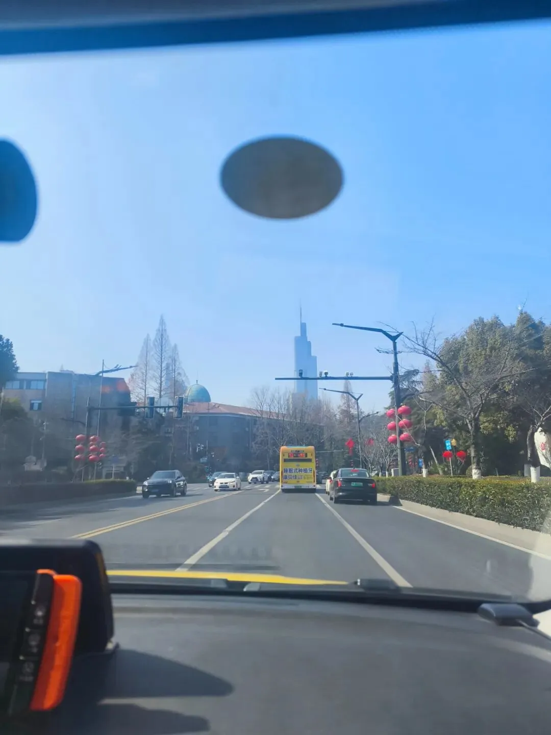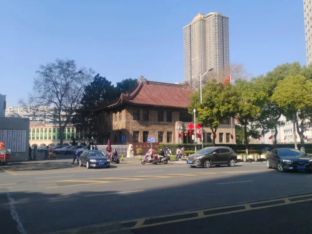 吃舒服了,下一站,原计划去中华门城墙的,小老王说时间还早,我们去下颐和路吧,那里有很多的民国初年的建筑。那就去吧。准备在APP上订一辆专车,结果一辆空的的士停在路边,那就上吧。看见紫金大厦,小老王让我拍照。
