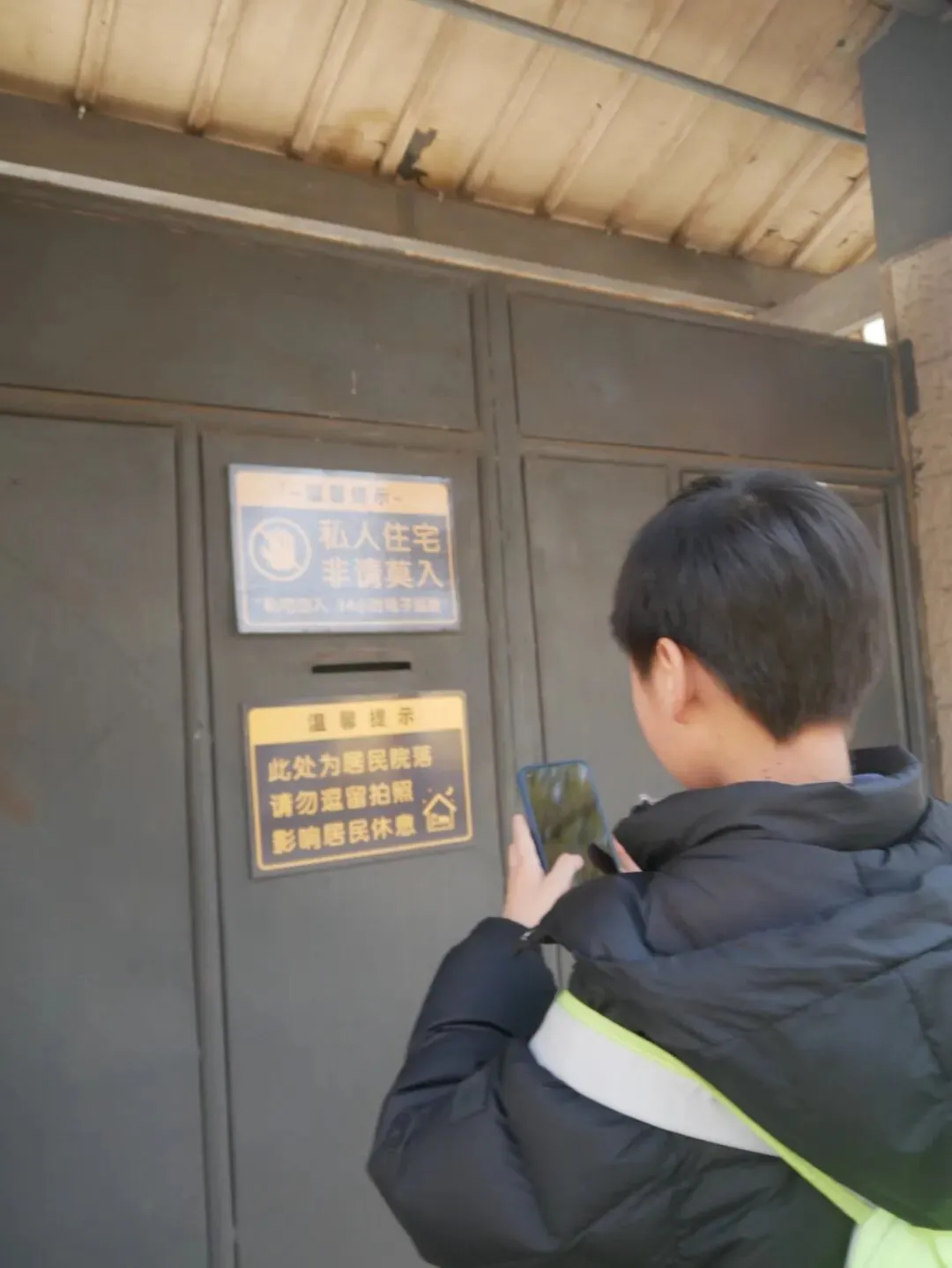 住在这里的肯定是大佬级人物啊。门外的标语也展现出大佬的无奈。