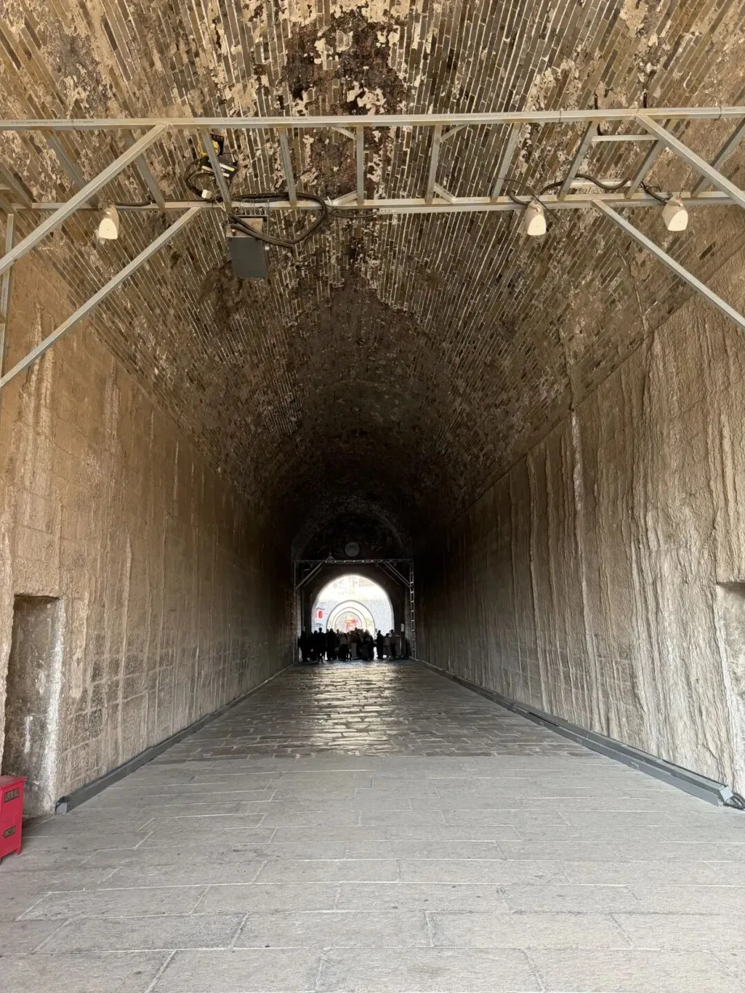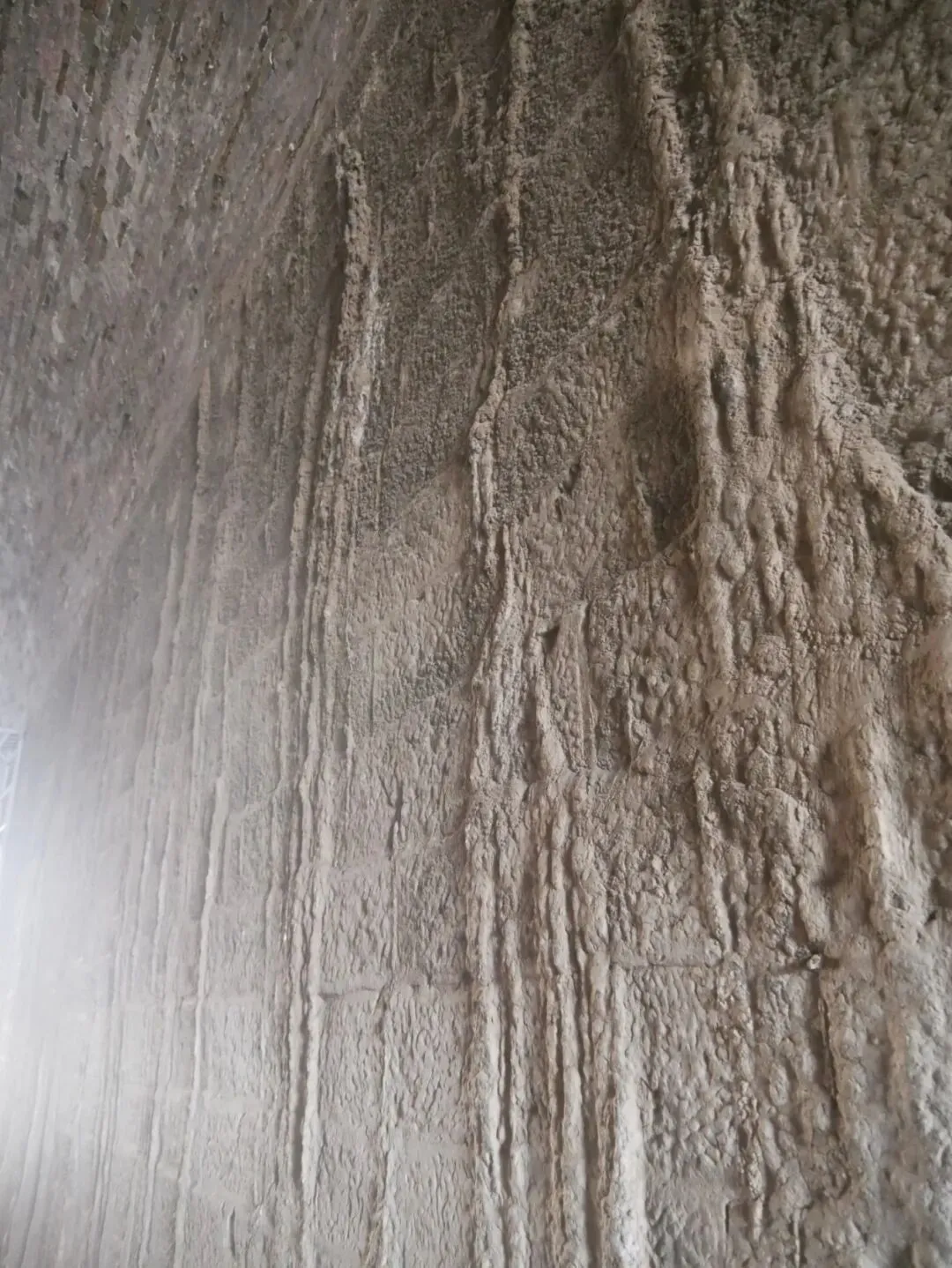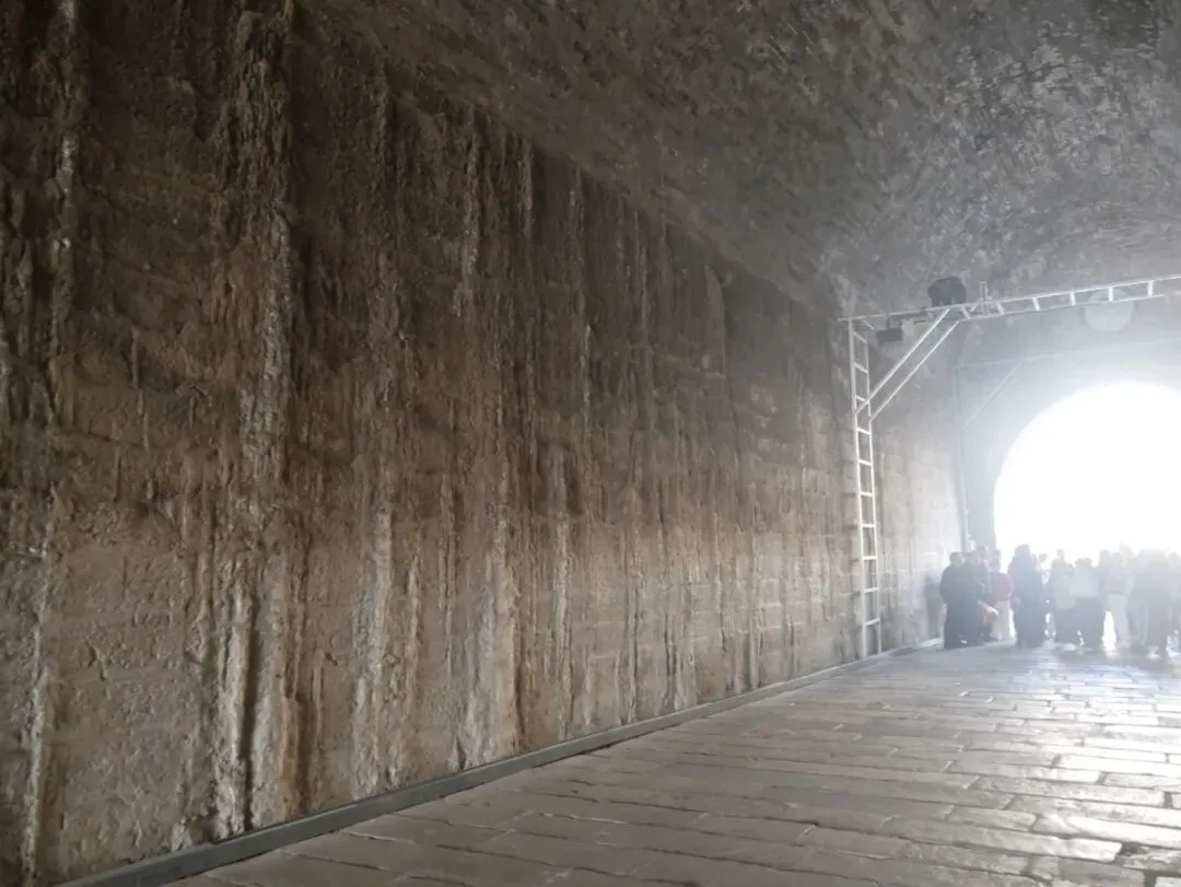 钻过最南面的城门,就可以到外面了,听见有人讲解,墙上像滴下来的钟乳石的其实是古代的粘合剂滴落下来的。成分是糯米 、石灰等。