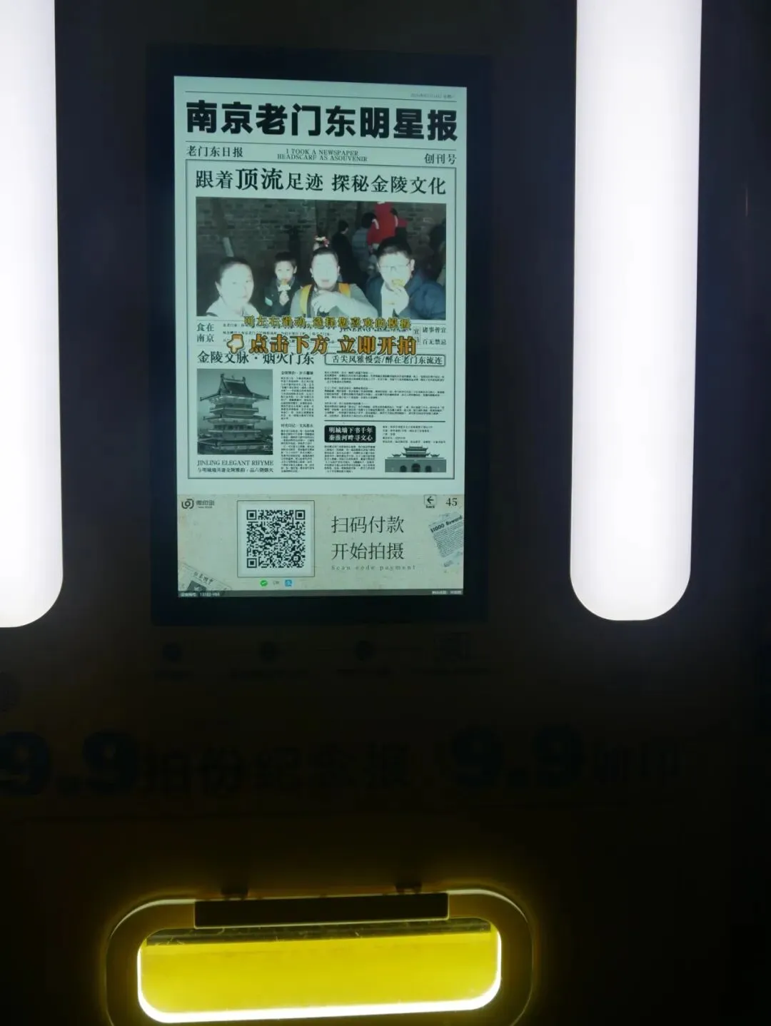 地铁后的广告正好是夫子庙,小老王说,帮我们一家来一张有些特别的南京夫子庙合影、