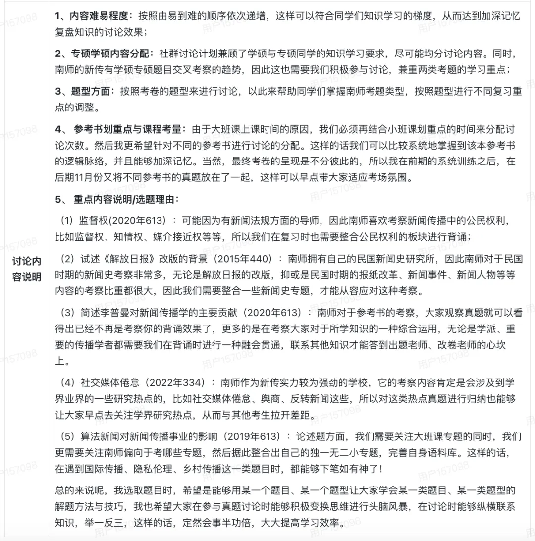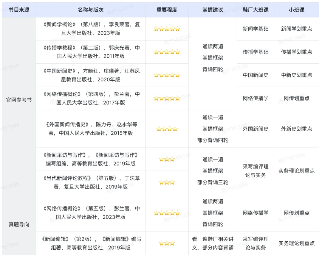 知识广度与交叉性:在基础参考书外,融入网络传播、导师论文方向内容,需关注学界热点并兼顾学硕考题趋势(如交叉知识点)。